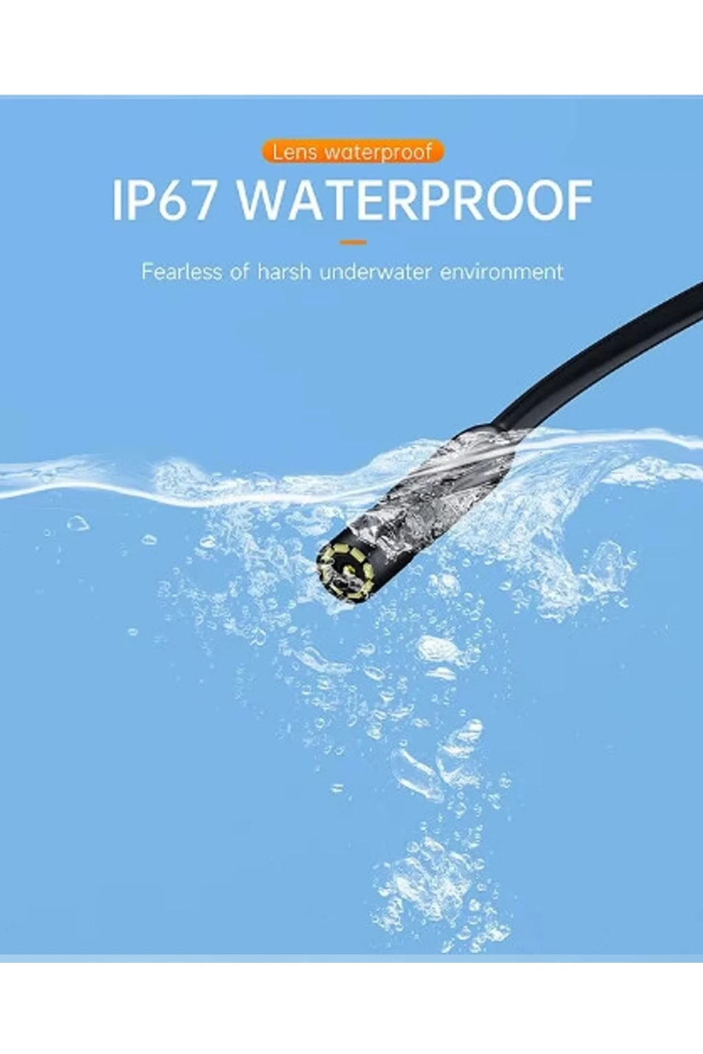 3.IP67 su geçirmez ve yarı sert kablo endoskop kamera IP67 su geçirmez performansa sahiptir, bu yarı sert kablo serbestçe bükülebilir ve uzatılabilir, yere ulaşması zor olanlara ulaşmak ve çözmek kolaydır ve su boruları, drenaj gibi ıslak alanlarda muayene ve bakım için kullanılabilir. Ve diğer dar ve küçük alanlar, hayatın rahatlığını artırmak için çok iyi.