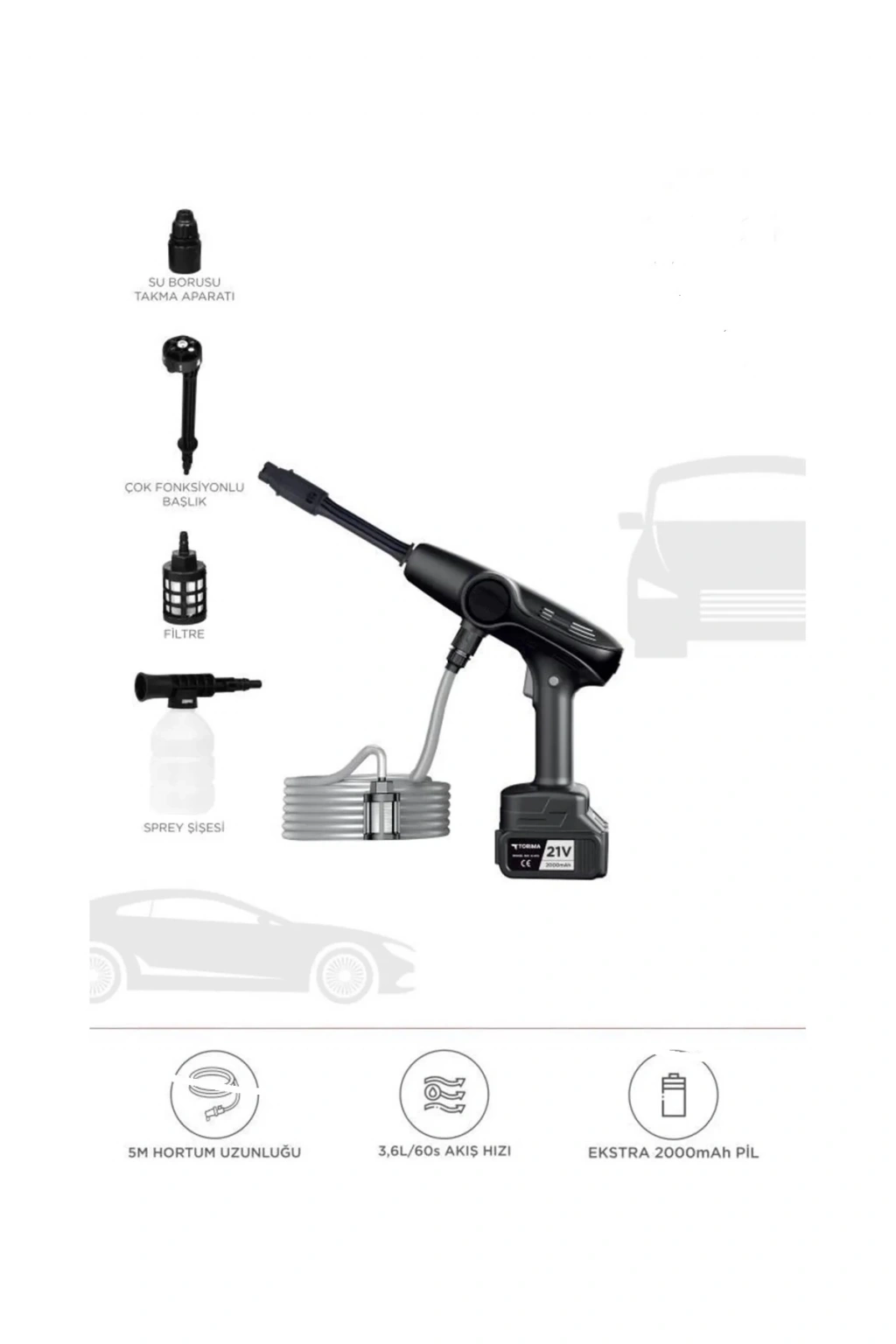 Akülü Şarjlı Yüksek Basınçlı Oto Araba Bahçe Yıkama,temizleme Su Sı