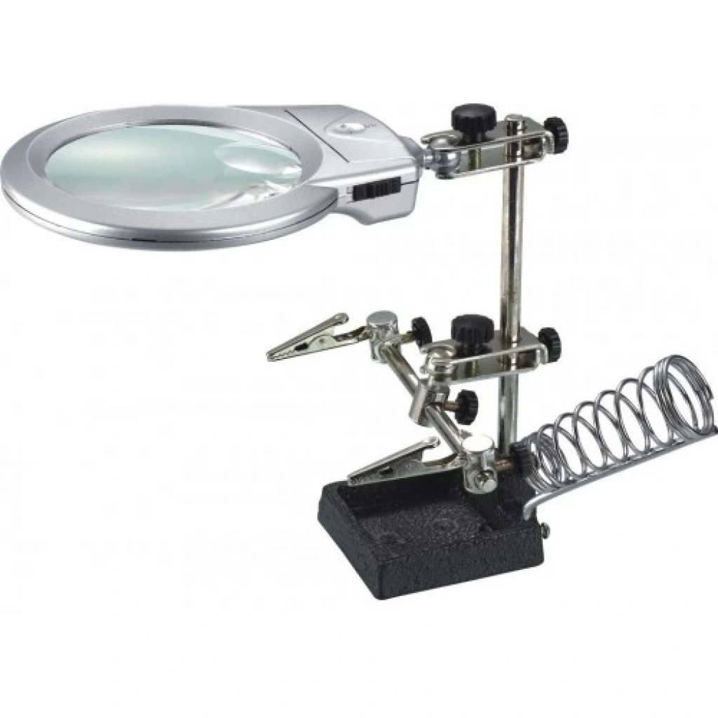 Ayarlanabilir Başlıklı Elektronikçi Yardım Lehim Standı Ile Ledli Büyüteç