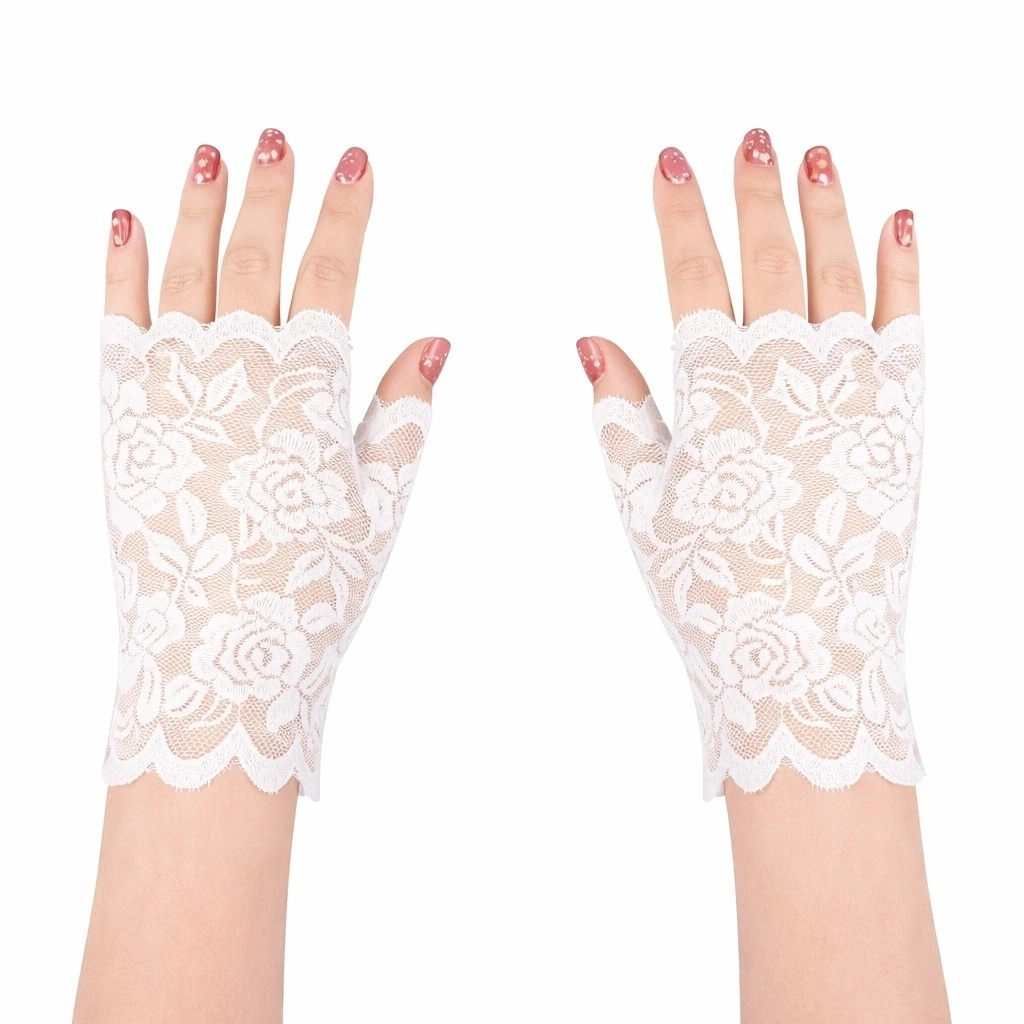 Zarif ve estetik tasarımıyla öne çıkan beyaz gül desenli dantel parmaksız eldiven, şık kombinler ve özel etkinlikler için ideal bir aksesuardır. İnce dantel dokusu ve gül desenli tasarımı ürüne zarif bir görünüm kazandırır.