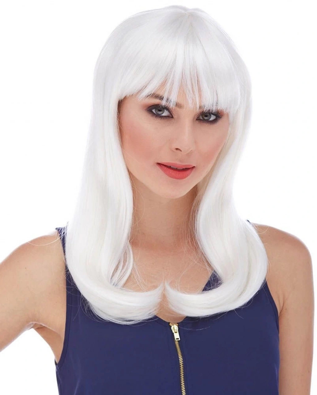 Beyaz Renk Uzun Düz Parti Peruğu