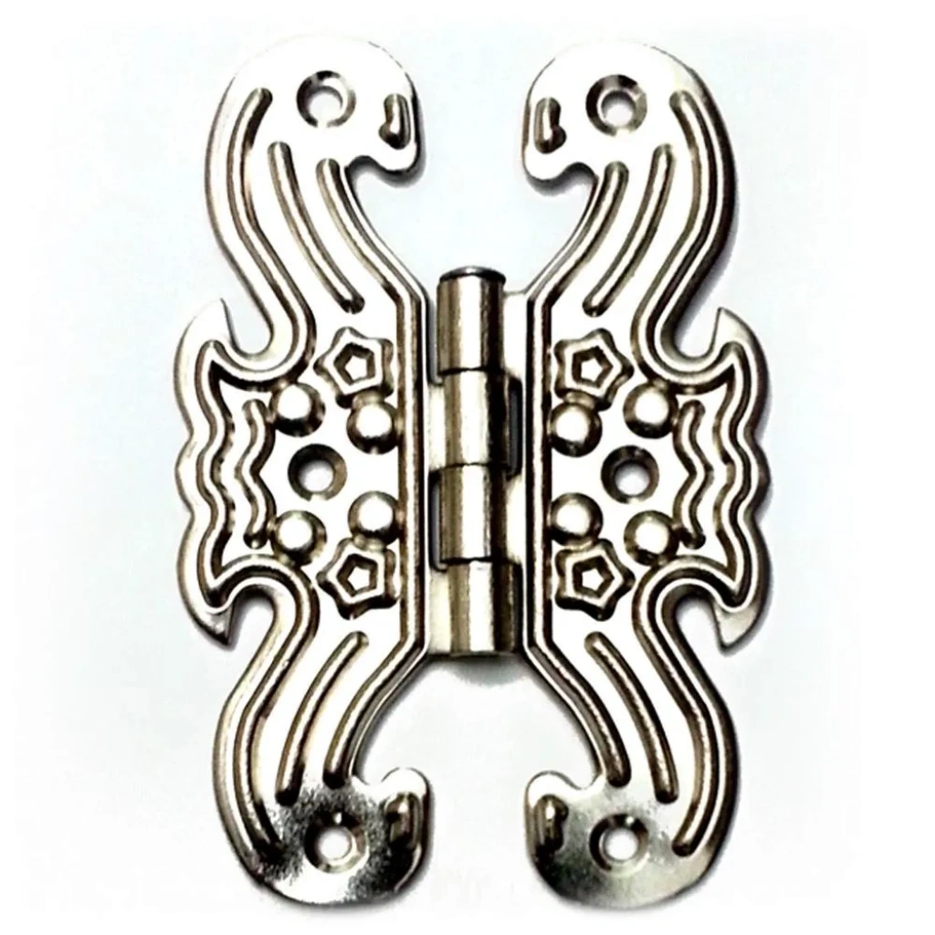 Dekoratif sac kelebek menteşe, büyük boyutu ve nikel kaplamasıyla hem estetik hem de işlevsel bir çözüm sunar. 100 lik , büyük projeler ve ticari uygulamalar için ideal bir miktardır.