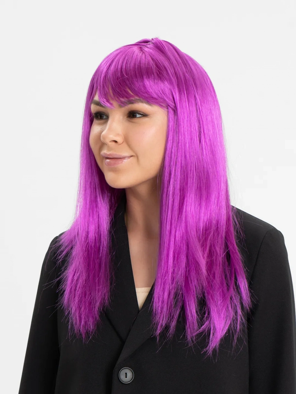 Bu peruk, canlı ve cesur fuşya rengi ile dikkat çekici bir görünüme sahiptir. Düz kesimi ve uzunluğu ile modern ve şık bir tarz sunar.