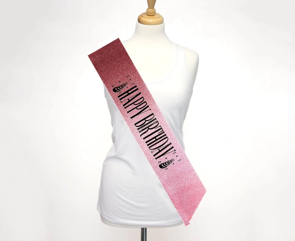 Pembe Üzeri Siyah Büyük "Happy Birthday" Yazılı Simli Işıltılı Kuşak Kemer'i Neden Seçmelisiniz?
