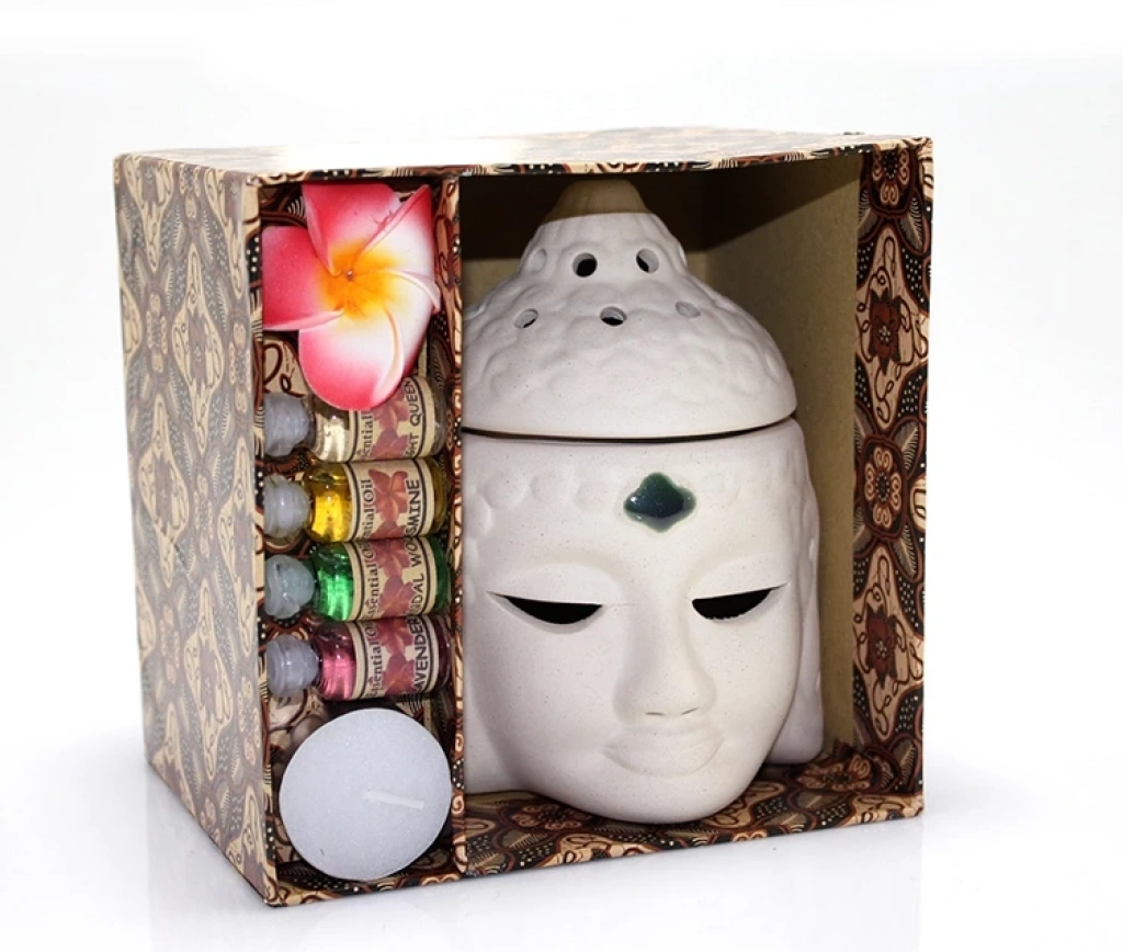 Seramik Buda Büstü Buhurdanlık Seti No:03