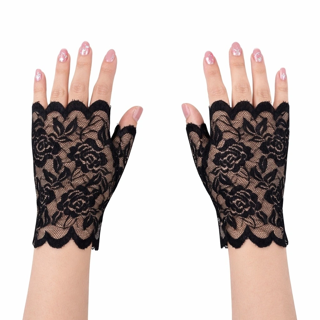 Siyah Dantel Parmaksız Kısa Eldiven
