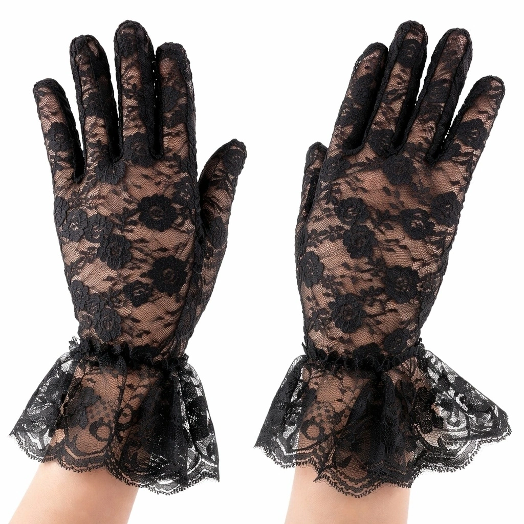 Zarafetin en şık tamamlayıcısı olan siyah dantel kısa eldiven, özel günlerde ve kombinlerde fark yaratmak isteyenler için tasarlandı. İnce ve transparan dantel yapısı, çiçek desen detayları ve bilek kısmındaki fırfırlı tül tasarımı ile feminen ve dikkat çekici bir görünüm sunar.